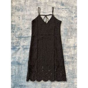 Chaser Black Floral Lace Scallop Hem Strappy Slip Dress Medium