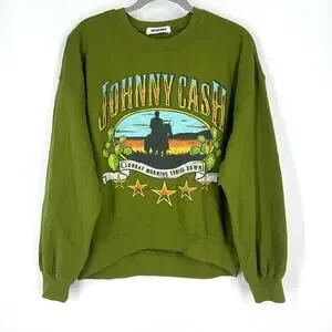 Daydreamer Johnny Cash Sunday Morning Coming Down Crew Sweatshirt Green Small