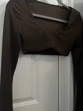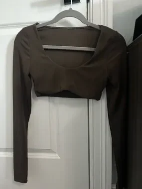Stylish brown long sleeve crop top bra. Provides a good amount of support. In good condition.