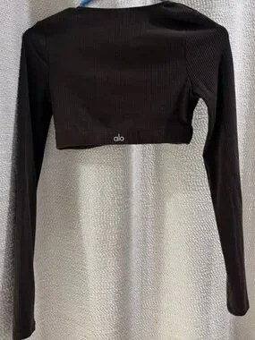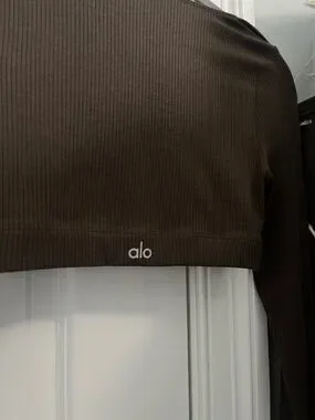 ALO Yoga Brown Ribbed Long Sleeve Crop Top