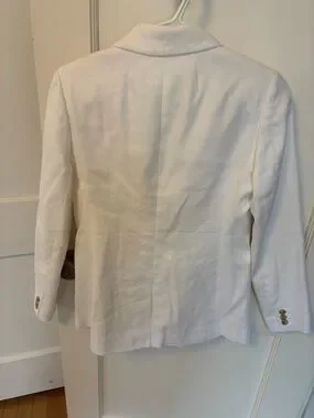 Sleek white blazer with a clean, notchless lapel. Single-button front for a polished silhouette. Tailored fit that layers easily over shirts. Minimal design ideal for work or weekend looks.