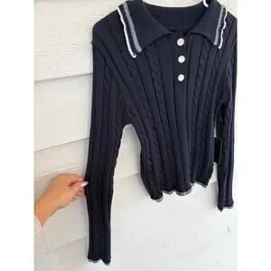 Alice Blue Navy Cable Knit Collared Sweater Juniors Size S Preppy Button Front