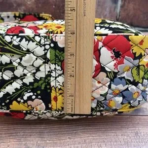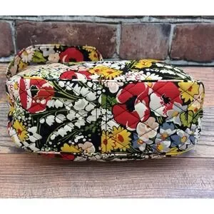 Vera Bradley Black Floral Quilted Shoulder Bag with Red, Yellow & Green Accents