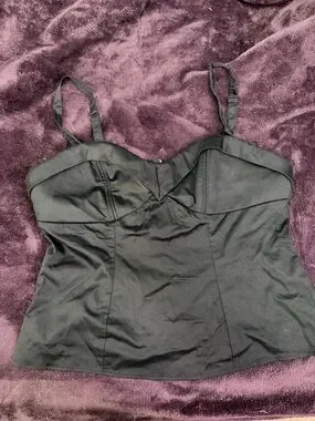 The Maneater: our ultimate bust-defining top with padded cups and adjustable straps! Same great support without the underbust seams! Made from a heavyweight cotton stretch sateen with a separating back zipper and defined under-bust seam, this top is built to support you like a bra. Get Micheline's famed detailing and fit with her newest creation! Designed by Micheline Pitt and made by hand in Los Angeles, CA.