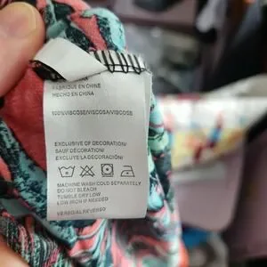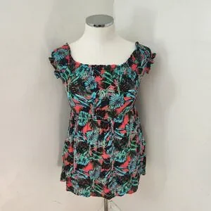 Salty Lemon Tropical Palm Leaf Smocked Bodice Top Coral Teal Women Small