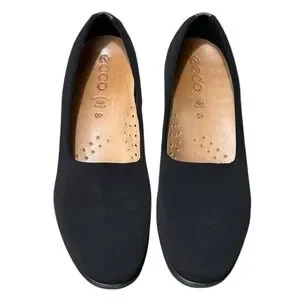 ecco felicia, black comfort shoes, stretch loafers, wedge heel flats, slip on work shoes, women size 9, leather insole, walking footwear, office casual shoes, lightweight loafers, supportive flats, travel shoes, ergonomic design, minimalist style, everyday comfort