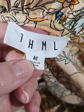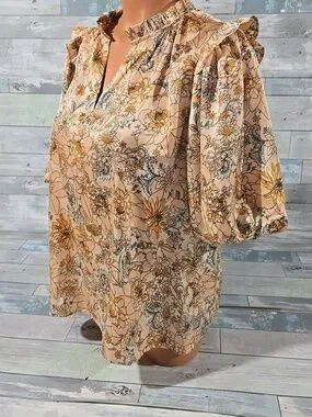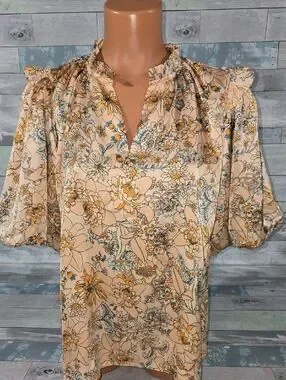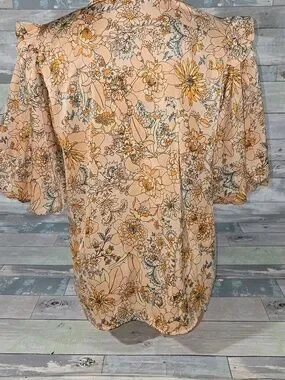 THML Peach Floral Ruffle-Neck Blouse/Shirt/Top Sz Medium