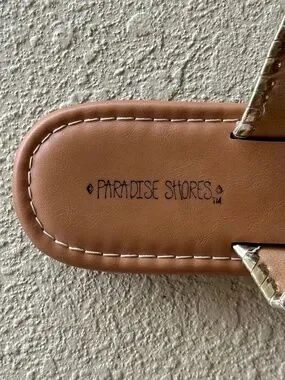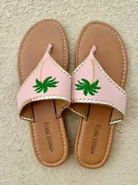 Paradise Shores Leather Embroidered Palm Tree Flip Flops, NWOT, Size 9M