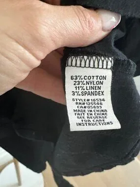 Fabric: 63% cotton, 23% nylon, 11% linen, 3% spandex