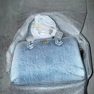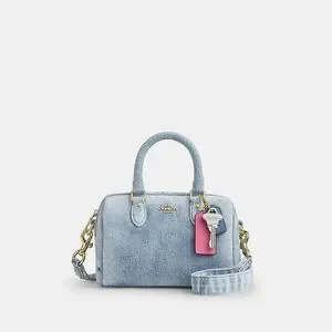 Coach Mini Rowan Crossbody Bag In Loved Denim With Charms