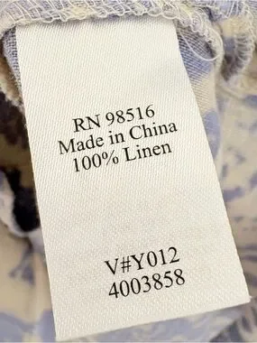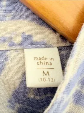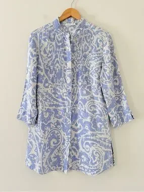 Coldwater Creek Linen Tunic Dress Blue White Paisley Print Pintuck Size M