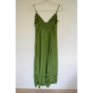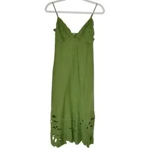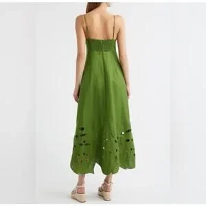 Farm Rio Green Monstera Embroidered Linen Midi Dress