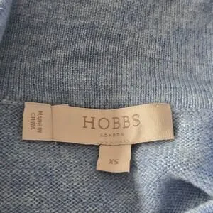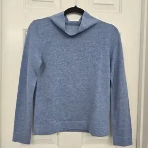 Hobbs London Merino Wool Cashmere Funnel Neck Sweater Blue XS Soft Cozy Winter