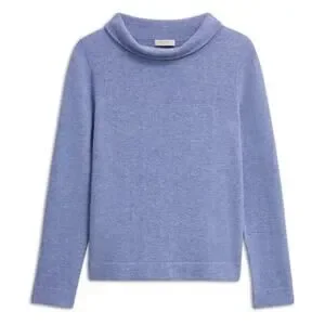 Hobbs London Merino Wool & Cashmere Funnel Neck Sweater in a soft heather blue. Crafted from a luxurious blend of 90% merino wool and 10% cashmere, this knit offers exceptional softness, warmth, and durability.