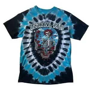 Grateful Dead Liquid Blue Tie Dye Skull Roses Steal Your Bertha Tee Double Sided Estimated Size Small