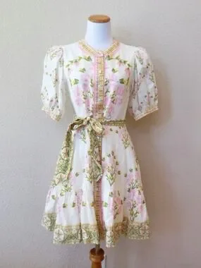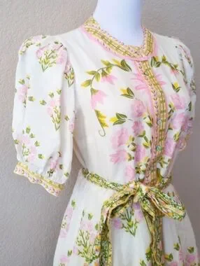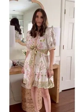 A Loves A linen blend floral belted puff sleeve dress. Lovely feminine print and silhouette.
