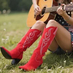 Durable and Anti-Slip These chic women's knee high cowboy boots are made of supple microfibre leather, which are durable, eco-friendly materials. The wear- and slip-resistant qualities of the rubber outsole make walking easy and comfortable to the mid calf cowboy boots.
