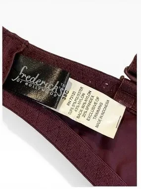 Fredericks of Hollywood Lingerie Set XL Burgundy Gold Bustier Bra Garter Belt