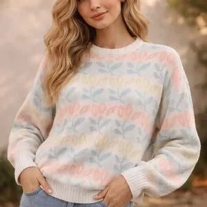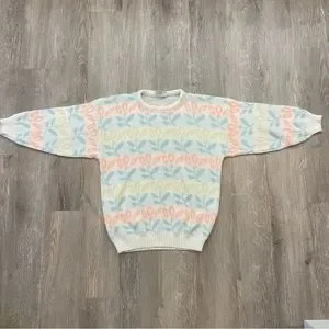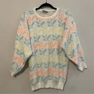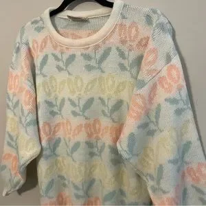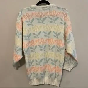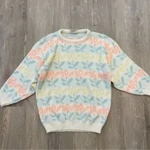 VINTAGE 1980s Justin Allen Spring Cottagecore Pastel Sweater - Size M