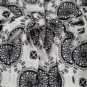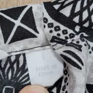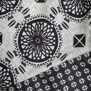Geometric print with contrasting micro-dot pattern along bottom hem
