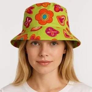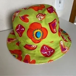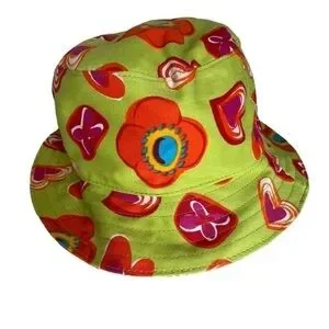 Nordstrom Lime Green Orange Pink Cotton Canvas Floral Print Bucket Hat