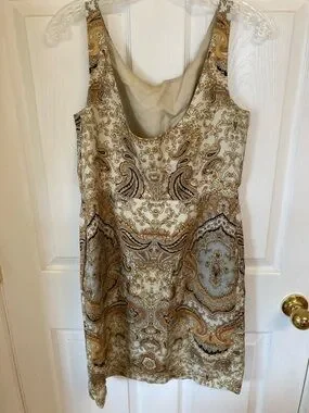 J. Crew 85% Silk Gold & Cream Paisley Midi Sheath Dress