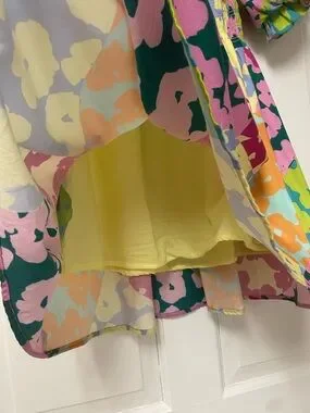 Crosby by Mollie Burch Multicolor Floral Smocked Puff Sleeve Dress Size M