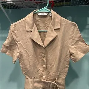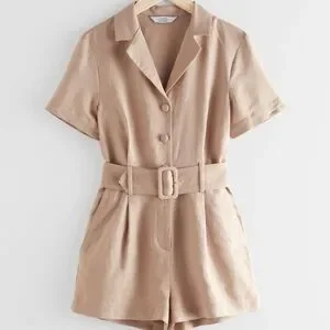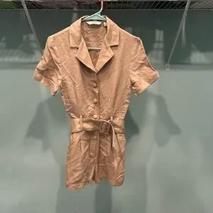 Chic beige romper with button-up design. Perfect for versatile styling.