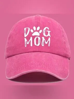 Dog Mom Dog Lover Pink Hat Adjustable Baseball Hat, Printed Hat