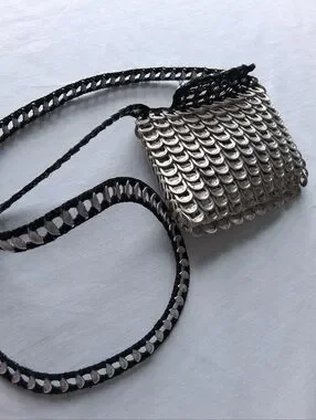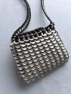 Handmade Pop-Tab Bag Silver Upcycled Soda Can Tabs Small