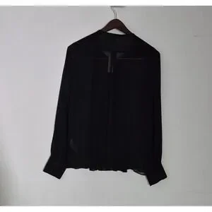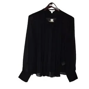 Banana Republic Blouse Womens MBlack Pleated Sheer Chiffon Long Sleeve Top