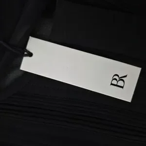 Features: Lightweight polyester chiffon fabrication for comfortable wear in spring or fall, classic black color that pairs well with trousers, skirts, or denim, versatile design appropriate for business, office, or casual outfits, and subtle BR logo branding at the interior neck and on the attached hang tag.