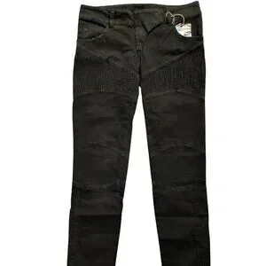 John Richmond X Black Cotton Ruched Cropped Skinny Pants Jeans Sz 38 NWT