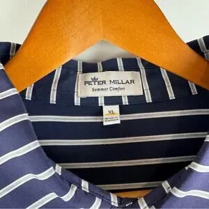 Peter Millar Summer Comfort Navy and White Striped Polo XL