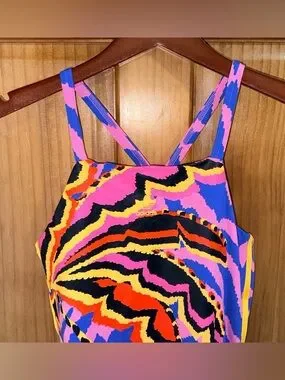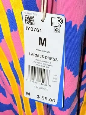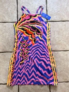 NWT Adidas x Farm Rio Pink & Blue Zebra-Stripe Mini Tank Dress-M