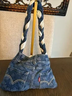 Levi’s Denim Heart-Print Shoulder Bag w Braided Strap - custom-made