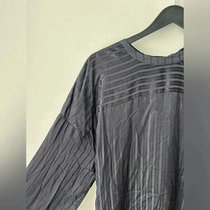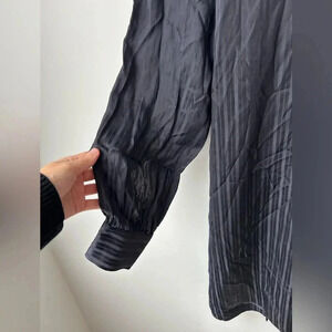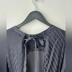 Aritzia Wilfred Silk Striped Mini Dress Navy Blue Tie Waist Long Sleeve Size L