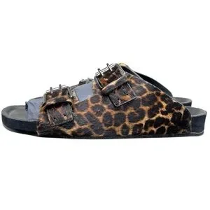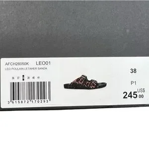 NIB The Kooples Leo Poulain Leather Animal Print Double Strap Sandal Size EU38