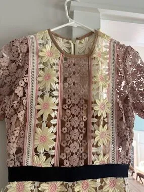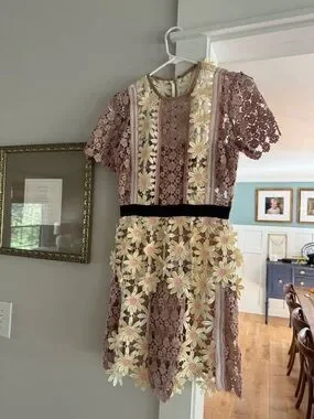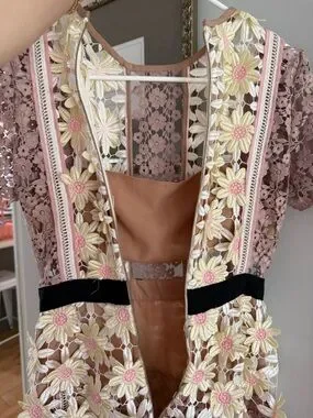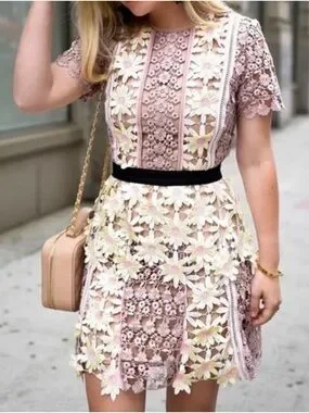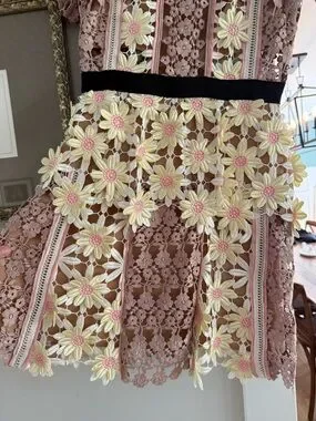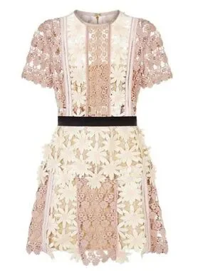 Self-Portrait Blush and Ivory Lace Appliqué Dress