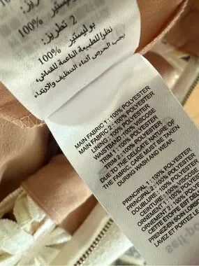 Delicate floral lace appliqués. Fitted bodice with feminine lines. Soft blush fabric paired with ivory embroidery. Elegant and romantic aesthetic.