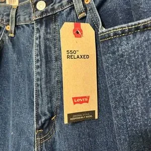 These Levi's 550 Relaxed Fit jeans offer the perfect blend of comfort and timeless style for any wardrobe. Crafted from durable medium wash denim, they feature a relaxed fit through the seat and thigh with a classic tapered leg for a silhouette that feels as good as it looks. This pair is brand new with tags and ready to become your go-to favorite for effortless daily wear. Ideal for casual Fridays at the office, weekend errands, or a relaxed dinner out.