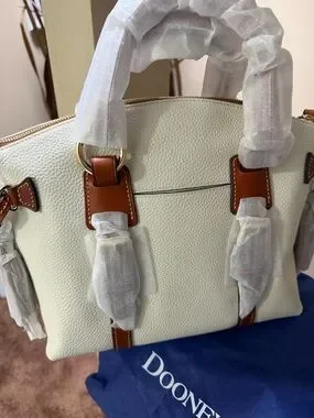 Dooney & Bourke Cream Pebbled Leather Satchel with Brown Trim