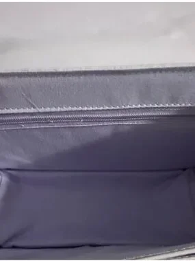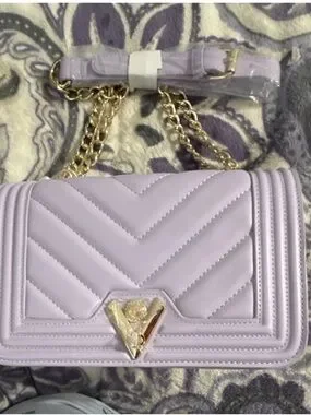 Chic lavender quilted crossbody with chevron stitching. Gold-tone chain strap and logo accent. Sleek flap closure for easy access. Very soft and feminine.