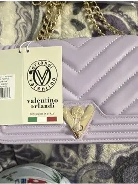 Valentino Orlandi Lavender Quilted Chain Crossbody with Gold Hardware