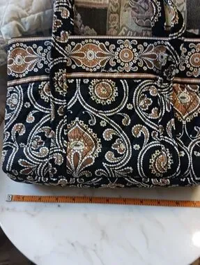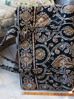 Here is a versatile shoulder bag by Vera Bradley in the 2008 Caffe Latte pattern in earth tones of brown and black.