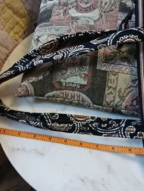 Dimensions are 13 inches wide, 8 inches tall, and 3.5 inches deep. Wash in a gentle cycle in your washer or sponge clean, if needed. This shoulder bag is clean and fresh-smelling.