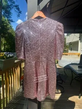 Summer Party Fairycore Sequin Puff Sleeve Playsuit Sz 2 Rose Metallic NWT