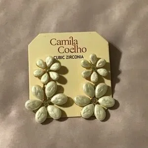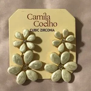 Camila Coelho White Floral Double Drop Earrings with Cubic Zirconia