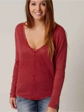 Free People We The Free Santa Cruz BOHO Henley Red Size Medium