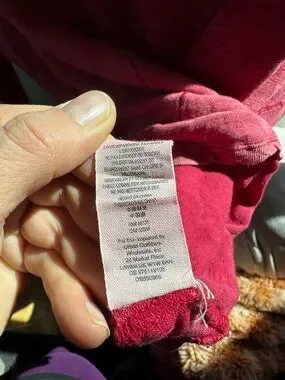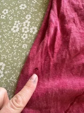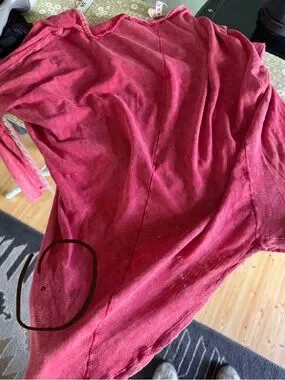 Previously used condition, some loose threads along the neckline as a result of the factory distressing. NOTE: there is a small hole on the lower left side. not super noticeable when wearing, but wanted to note the flaw.